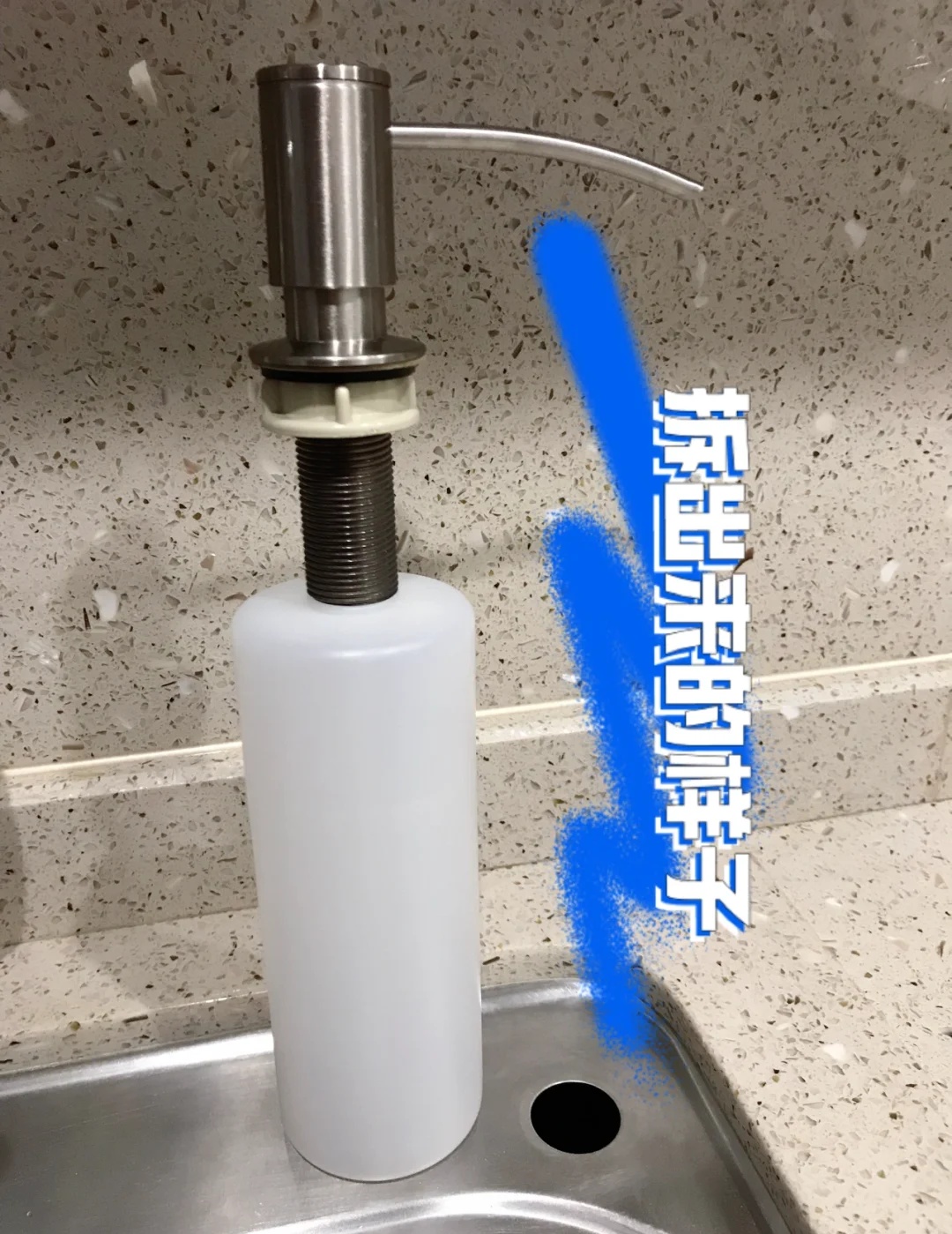 像这种水槽自带的洗洁精瓶,虽然用着很方便,平常就将洗洁精直接放到里面,然后用的时候轻轻挤压就可以了,但是水槽下面本身就是一个比较潮湿的环境,这个自带的洗洁精瓶很少有人主动清洗过,